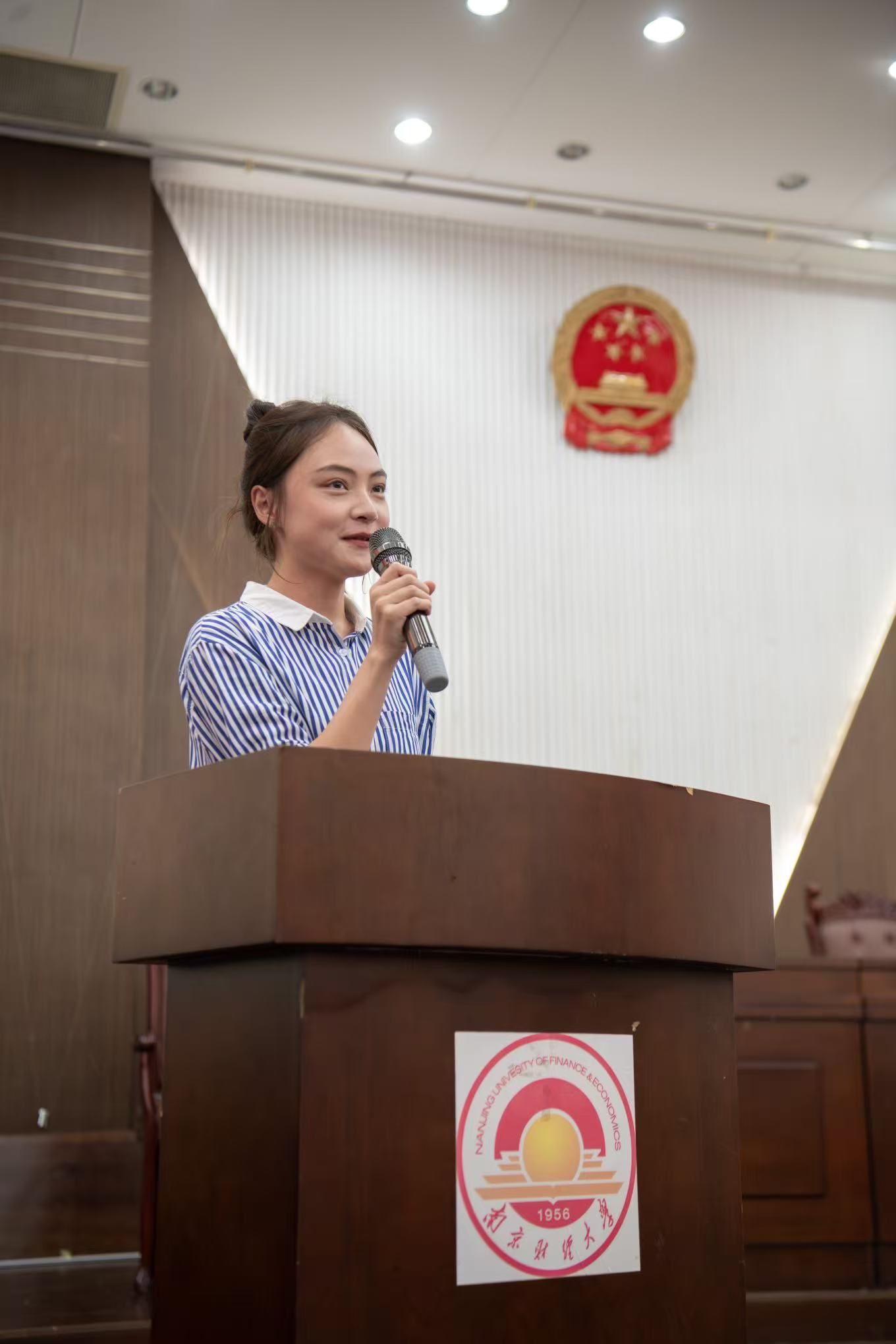 在校生代表张钰结合自身经历,分享了从迷茫到清晰的学习心路,为新生提供了实用的成长建议。紧接着,新老生代表共同朗诵《我和我的大学》,用真挚的声音传递南财法学人的精神接力与温暖传承。