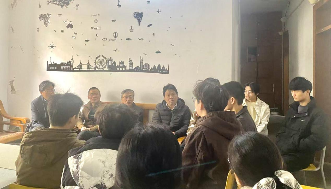 在仙林校区7号宿管站4栋二单元103学生宿舍,李茜书记详细询问同学们的学习进度、生活状况及职业规划,认真倾听大家在备考研究生、公务员以及实践实习等方面的情况,为同学们梳理成长路径,提出问题解决建议。他鼓励大家立足专业夯实基础,将法治素养融入个人发展,努力成长为符合社会需求的应用型人才。