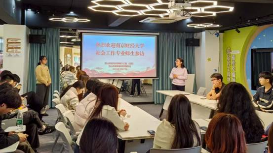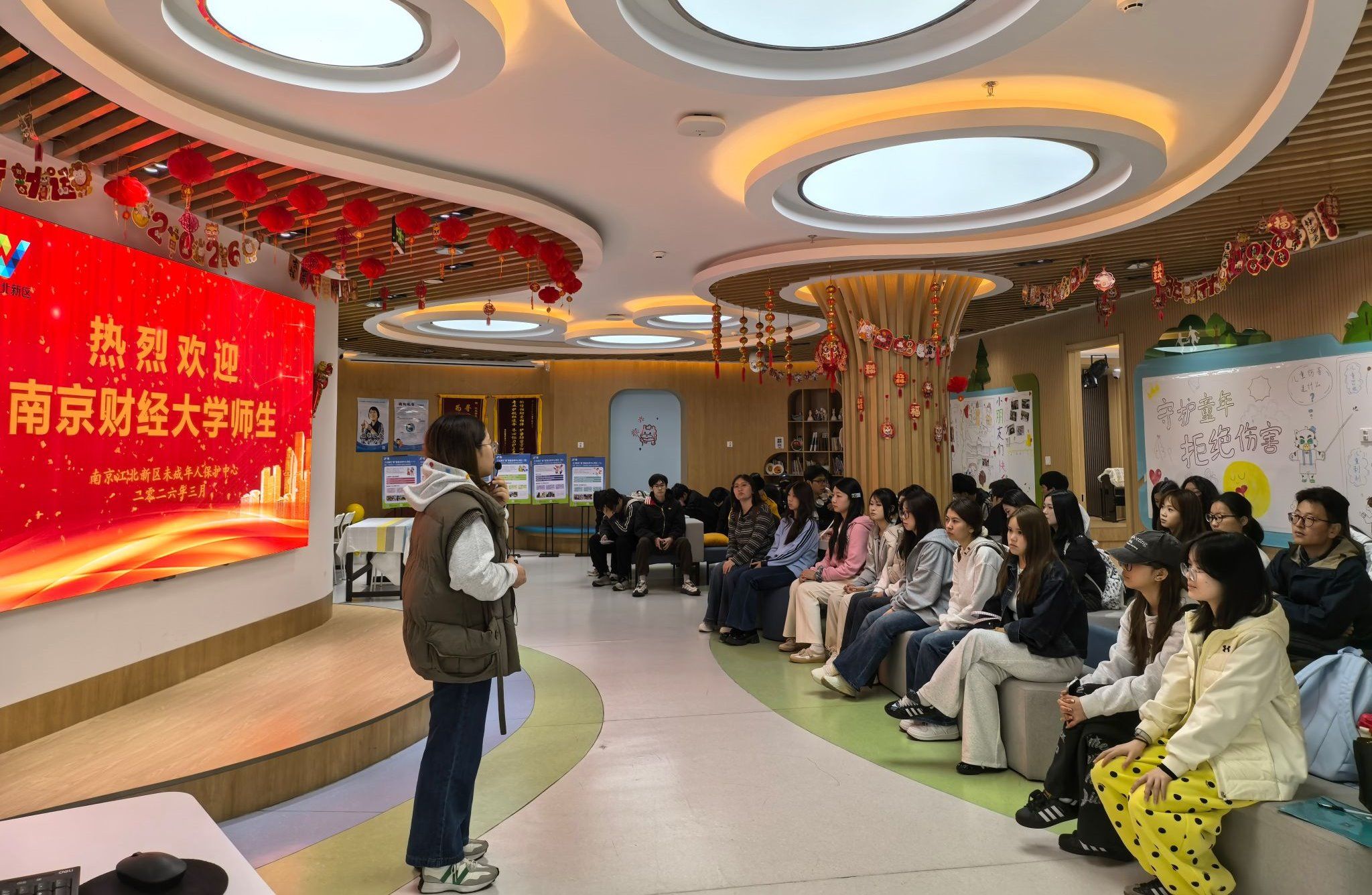 参访首站来到江北新区未成年人保护中心。该中心由南京同心未成年人保护与服务中心运营,2022年9月建成投用,内设儿童服务区、图书角、法治帮教区等功能空间,面向辖区困境、留守、流动儿童提供健康体检、心理疏导、女童保护、司法帮教等多元服务。社工李欢、雷妤围绕未成年人保护政策、阵地运营、公益项目、志愿见习岗建设等内容进行细致讲解,并分享江北新区原创公益歌曲《为爱护航,江爱唱响》,让欧美熟女 师生全面了解未成年人保护工作体系与服务模式,现场还发出实习邀请,鼓励同学们投身一线未成年人保护实践。