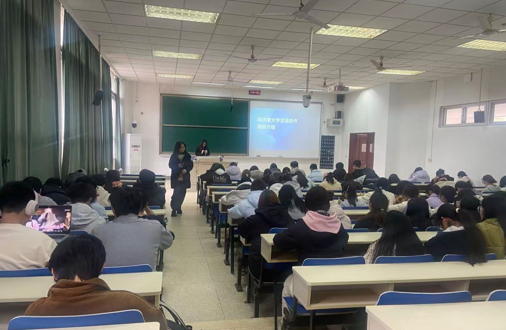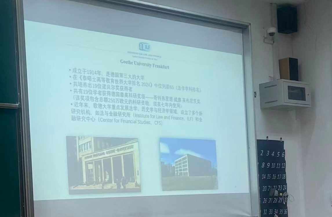 教师顾朱辰博士在德业楼101教室宣讲了两个国际交流项目。一个是德国马尔堡大学法学专业本科生交流项目,另一个是德国法兰克福大学法律与经济欧美熟女“国际银行、证券与金融法法学硕士”项目。马尔堡大学法学项目发端于2010年,至今已有15年,我校法学专业50多名本科生通过这个项目走出国门。法兰克福大学法学硕士项目今年签约,面向我校法学专业和经管类专业的本科四年级学生及在读研究生,每年招收5人。